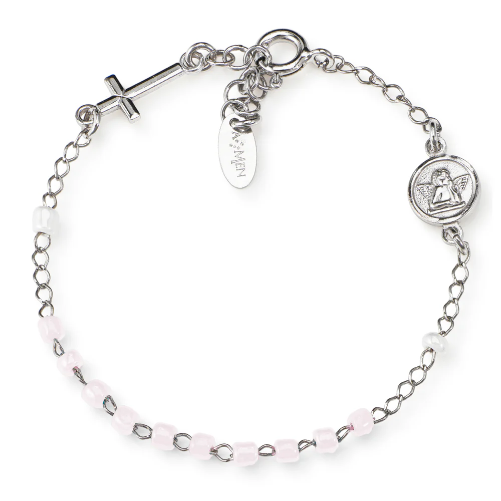 Srebrna narukvica s pink kristalom- Rodinirano – (Duljina 15+2cm)