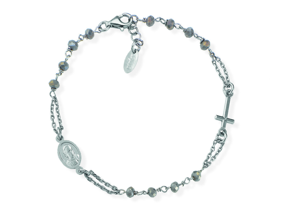 Srebrna narukvica s sivim kristalom- Rodinirano – (Duljina 18+2cm – Zrna Ø 3mm)