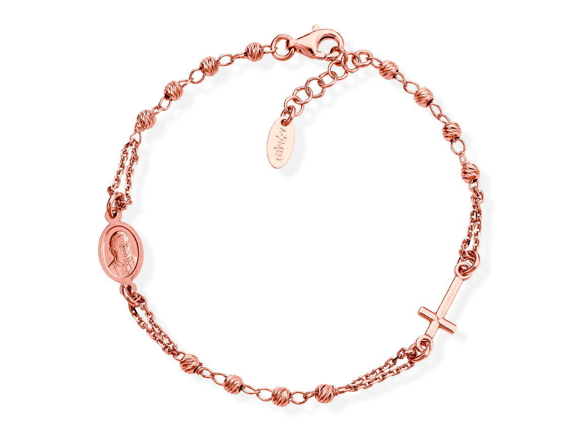 Srebrna narukvica s zrnima dijamantnog efekta – Rosè – (Duljina 18+2cm – Zrna Ø 3mm)