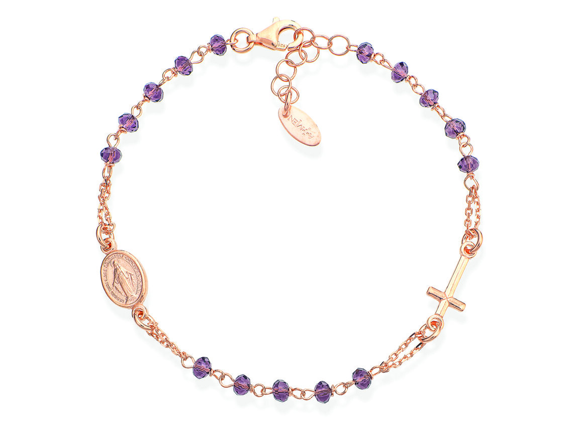 Srebrna narukvica s purpurnim kristalom- Rosè – (Duljina 18+2cm – Zrna Ø 3mm)