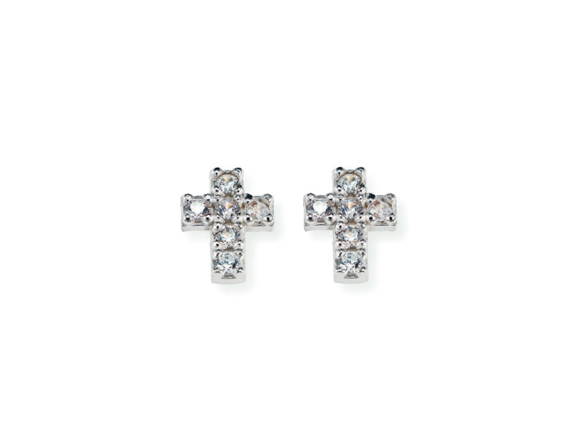 Srebrne naušnice s bijelim cirkonom – Rodinirano – (Duljina 1cm)