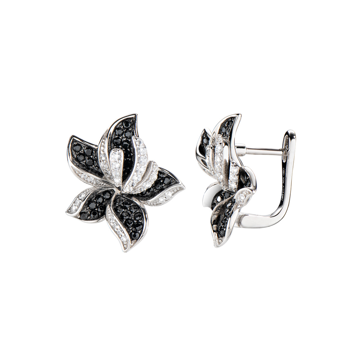 Srebrne naušnice s crnim bijelim cirkonom – Rodinirano