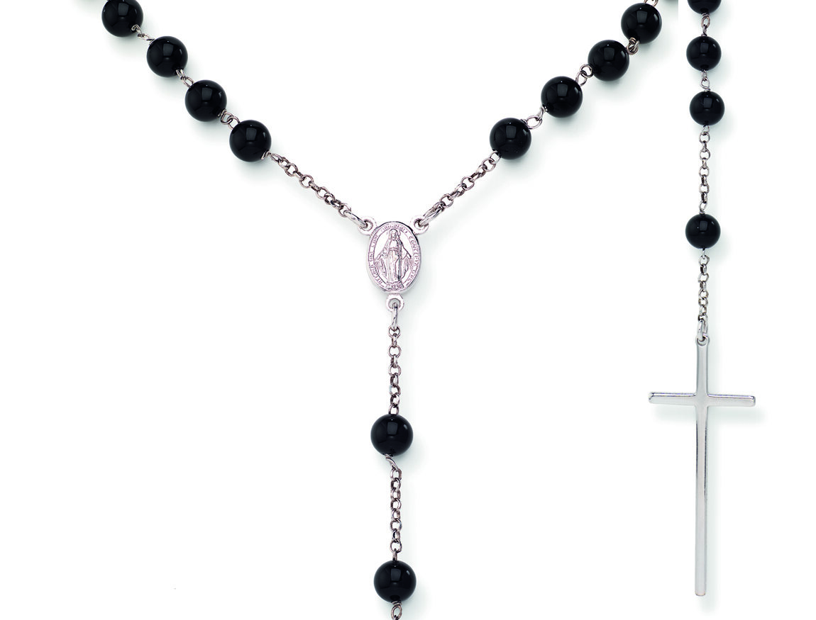 Srebrna ogrlica s onixom- Rodinirano – (Duljina 70cm – Ø 6mm – h. Križ 5cm)