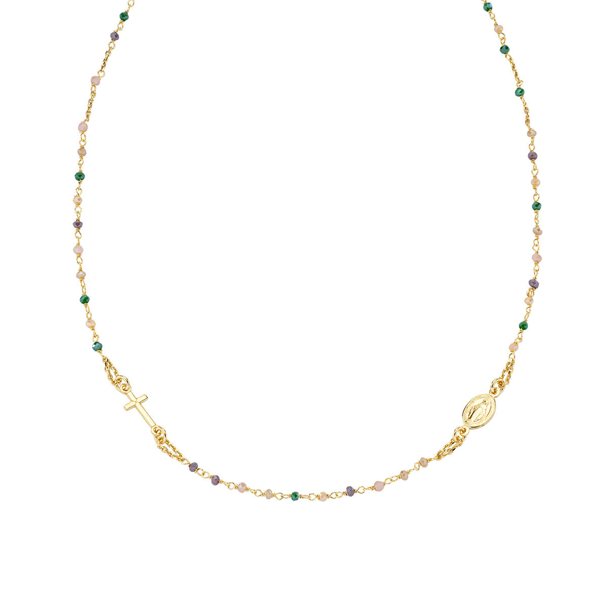Srebrna ogrlica sa sivim i zelenim kristalom- Zlato – (Duljina 44 + 4 cm)