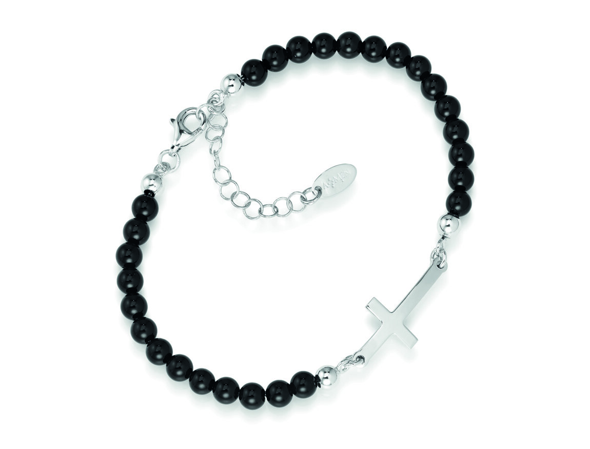Srebrna narukvica s oniksom – Rodinirano – (Duljina 17+3cm – onyx Ø 4mm – segm. L. 3,5cm)